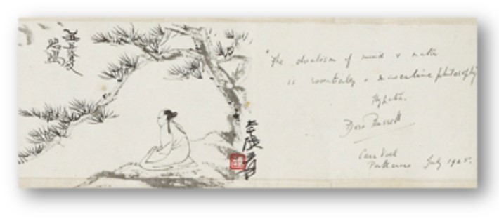 Among the other fruits of Xu’s year in Cambridge is the ‘Friendship/Handscroll’ (see below) for which he solicited contributions during his second visit to England in 1925. Contributors included the Chinese artist Zhang Daqian, the Chinese poet and artist Wen Yidou, the English artist Roger Fry, and the English feminist and socialist campaigner Dora Russell.