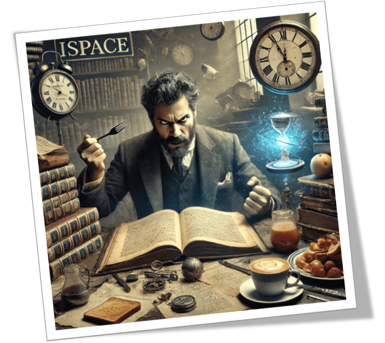 fork, of à grave Brofèsor; àth é’s Brèak — fast– table; ; acùtely profèššionally piquéd, to=introdùce a notion of time [ùpon à plane (?) sù ‘ ‘ fàç’e’] by pùnct! ingh oles (sic) in iSpace?! FW, 124