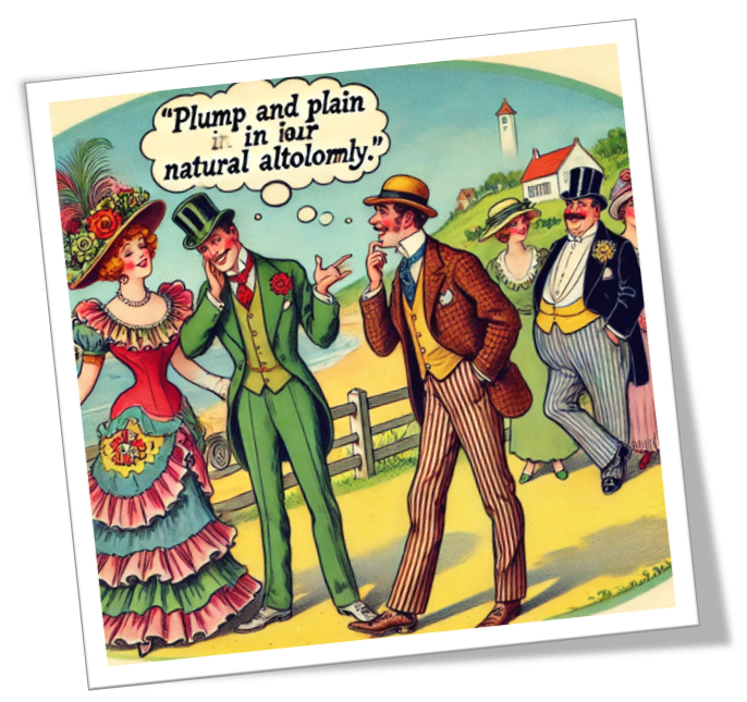 it is just as hurtful to sound sense (and let it be added to the truest taste) as were some fellow in the act of perhaps getting an intro from another fellow turning out to be a friend in need of his, say, to a lady of the latter’s acquaintance, engaged in performing the elaborative antecistral ceremony of upstheres, straightaway to run off and vision her plump and plain in her natural altogether. FW, 109