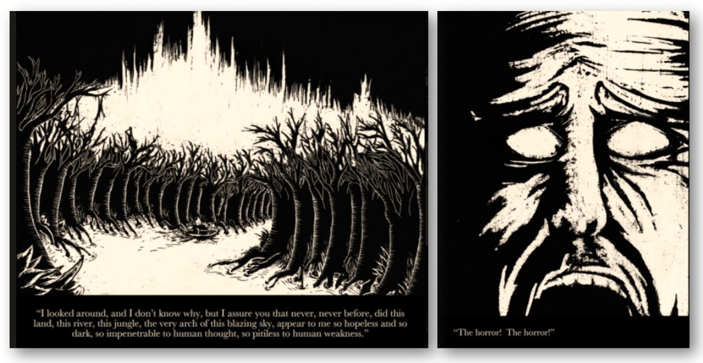 5. Heart of Darkness exerted a considerable influence over the course of the twentieth century. As a political satire, it became a reference point for the international human rights campaign against what E.D. Morel called The Congo Slave State (1903) — King Leopold II’s brutal and, at first, privately owned, African fiefdom — and decades later it provided the inspiration for Francis Ford Coppola’s indictment of the Vietnam War, Apocalypse Now (1979). It was no less influential as a sci-fi journey back to the origins of the species: in this guise it left its mark on, among others, T. S. Eliot and Virginia Woolf — the former in The Waste Land (1922), ‘The Hollow Men‘ (1925), and Four Quartets (1935-42); the latter from her debut The Voyage Out (1915) to her last novel Between the Acts (1941). The trouble is Conrad’s novella is not an anti-imperial satire plus a post-Darwinian sci-fi travelogue. It is both at once, a combination which, as Chinua Achebe argued in the 1970s, has fatal consequences for its handling of race. For Achebe, the issue is not just that Marlow sees the indigenous Africans of the 1890s as emblems of ‘prehistoric man’ but that Marlow-Marlow is a fictive mask for Conrad’s and Europe’s racist image of Africa. What a comparison with The Old Drift reveals is that Conrad’s trouble with race may have as much to do with Heart of Darkness’s generic complexity as with anything else. Unlike Serpell, who uses the mosquitoes’ science fiction chorus to comment philosophically and poetically on the family chronicle, Conrad stitches Marlow’s Wellsian travelogue into Marlow’s political satire, confounding any ethical insight either story might afford on its own terms and exposing the essential incoherence of his own novella.